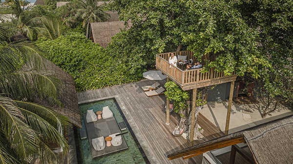 The Unique Villa: The Two-bedroom Royal Beach Villa offers a distinctive three-pavilion layout surrounding a central pool. A private treehouse provides elevated dining and horizon views, offering a balance of privacy and proximity to the lively Blu Beach Club.